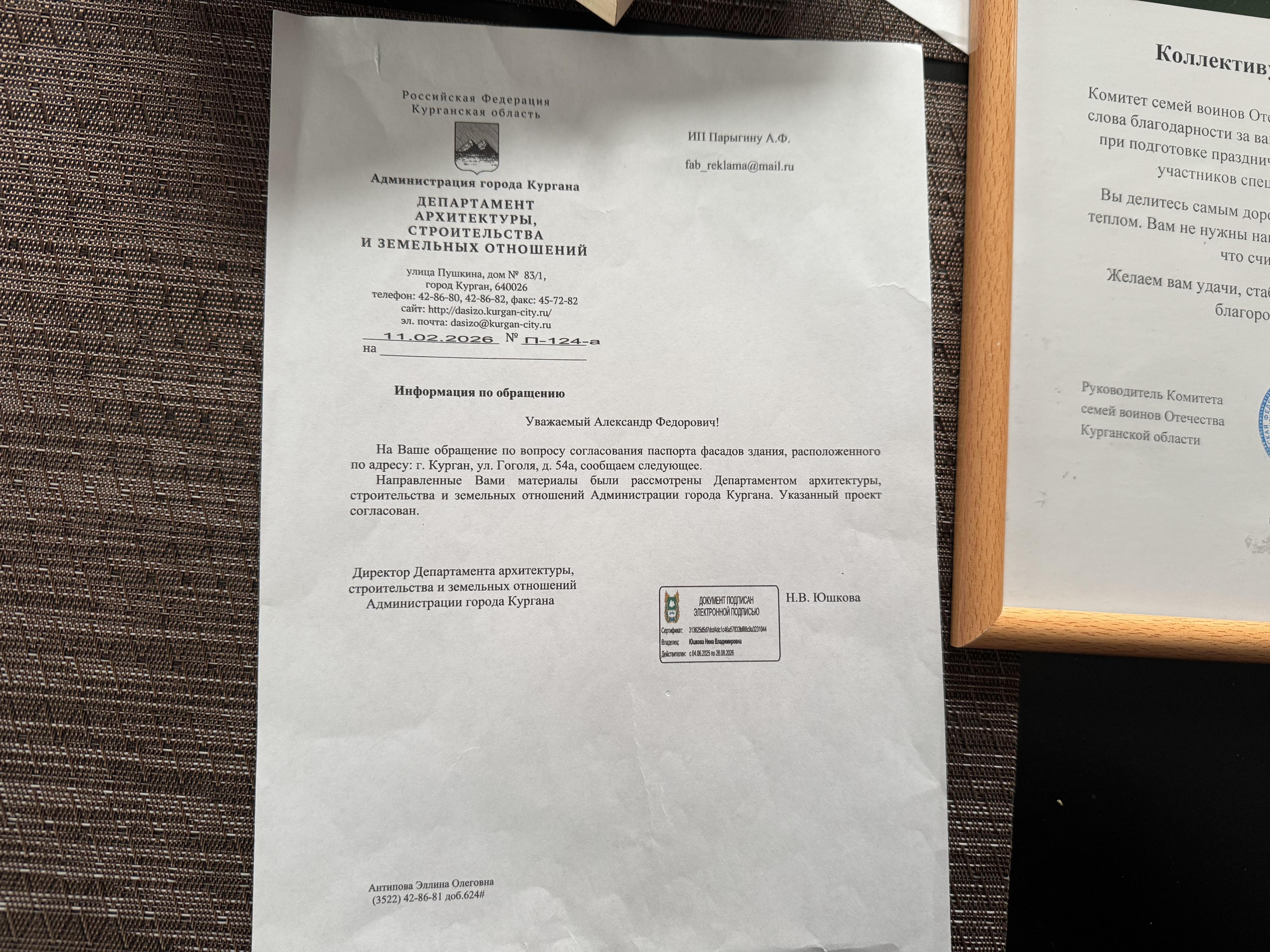 Документ, подтверждающий согласование проекта ремонта фасада «Ностальжи» от 11 февраля 2026 года.