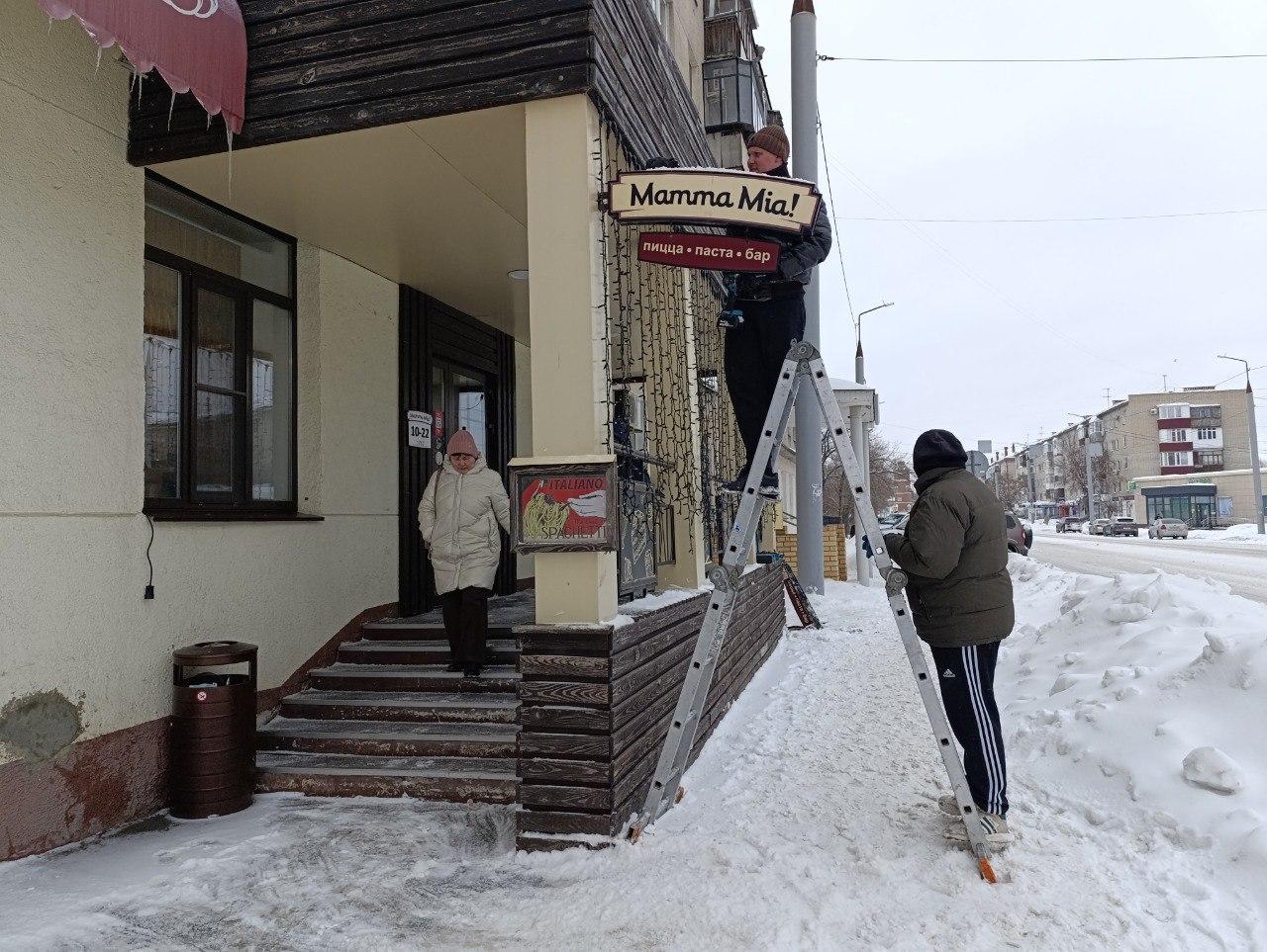 Утром в Кургане с семейного кафе «Mamma mia» демонтировали вывеску. Первоначально это связывали с введением закона «О защите русского языка».