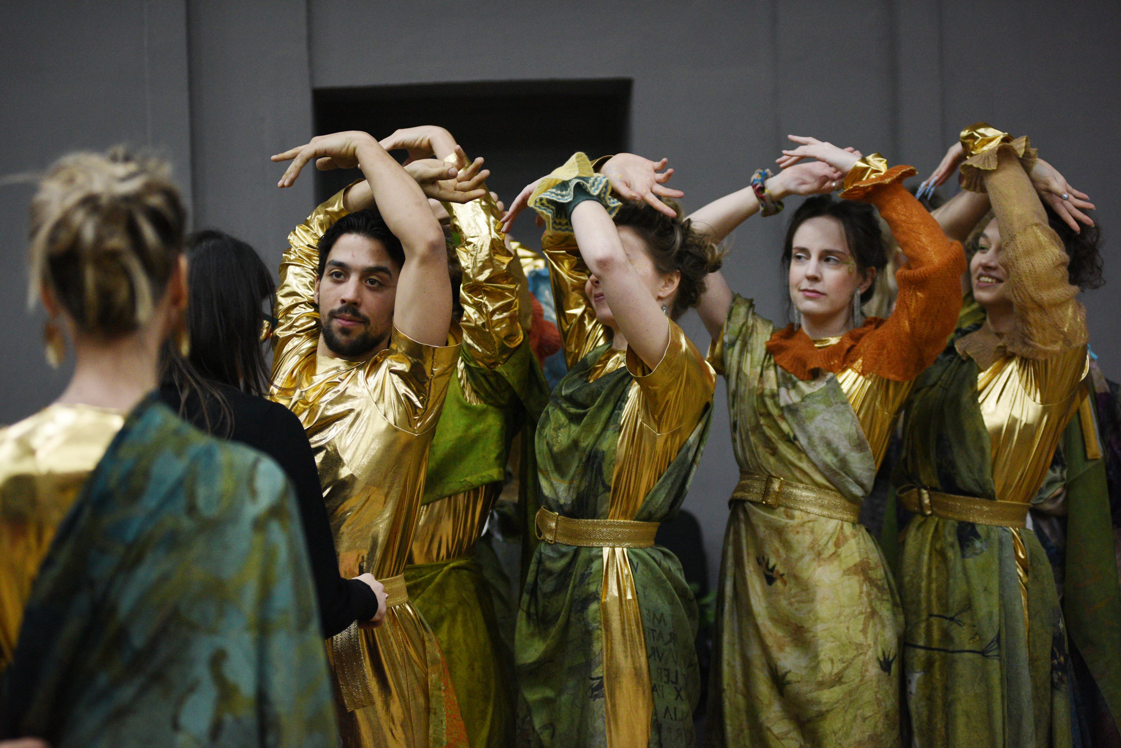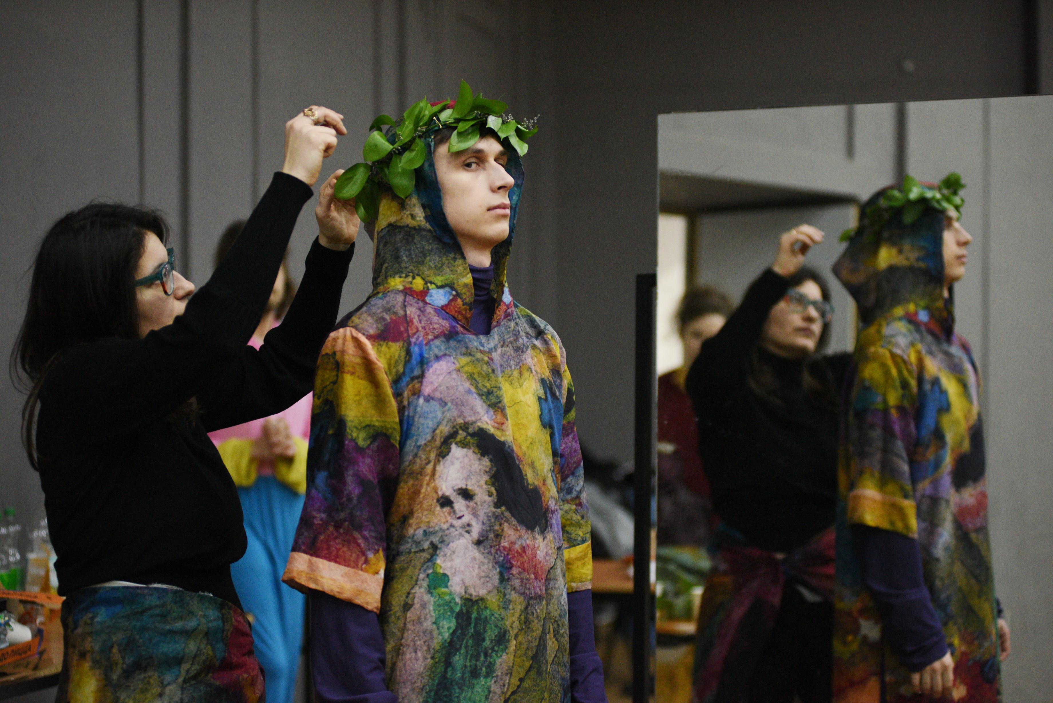 В качестве моделей выступили профессиональные танцоры из школы Summertime Swing. Они воплотили образы Данте, Вергилия, Буколической Овцы, Пастуха, Беатриче и других персонажей. Образы дополнила обувь ручной работы бренда «MyStory» Виктора Рождественского, а также вязаные изделия из митрила — смеси тончайшего мохера и шелка — от марки A.Knit Elegance.