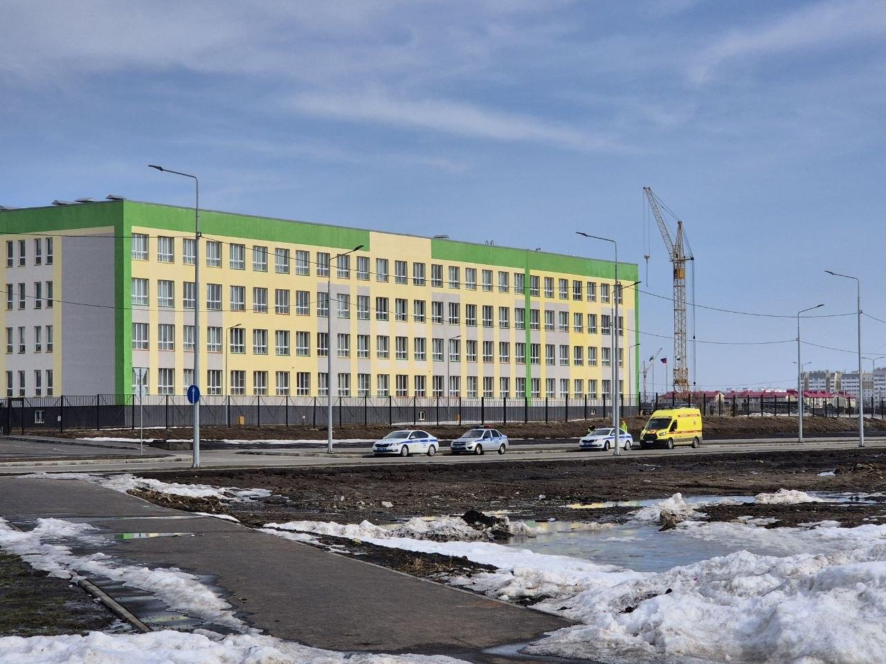 У здания школы несут дежурство наряды полиции и машина скорой помощи