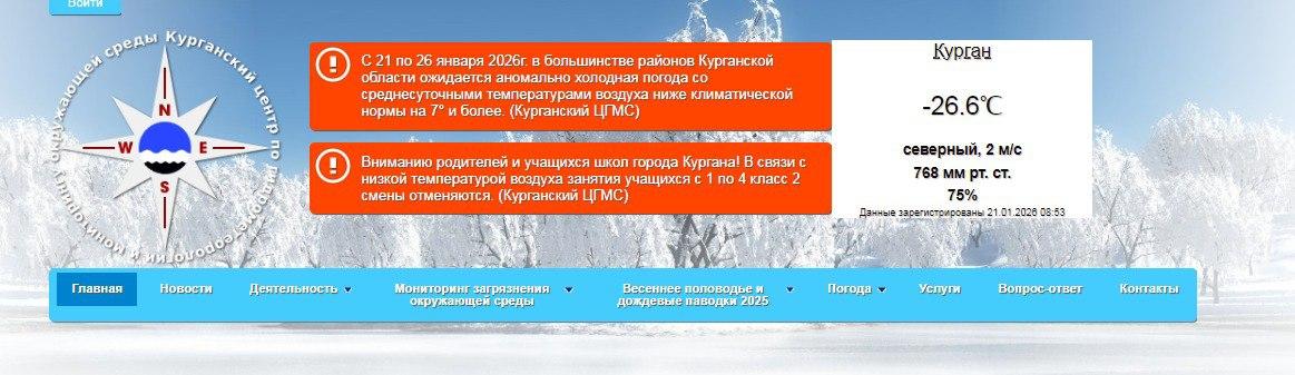 Причиной стали сильные морозы. По данным Курганского ЦГМС, в 8:53 утра температура в городе опустилась до -26,6°C. Днём ожидалось -21...-26°C при северо-восточном ветре 4–9 м/с.