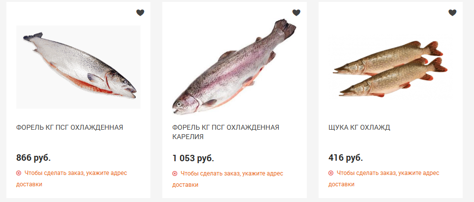 Охлаждённая форель относится к более дорогим позициям: карельская стоит от 1053 рубля за кг, а мурманская — до 1152 рублей за килограмм. Также в ассортименте есть щука по 416 рублей за килограмм.