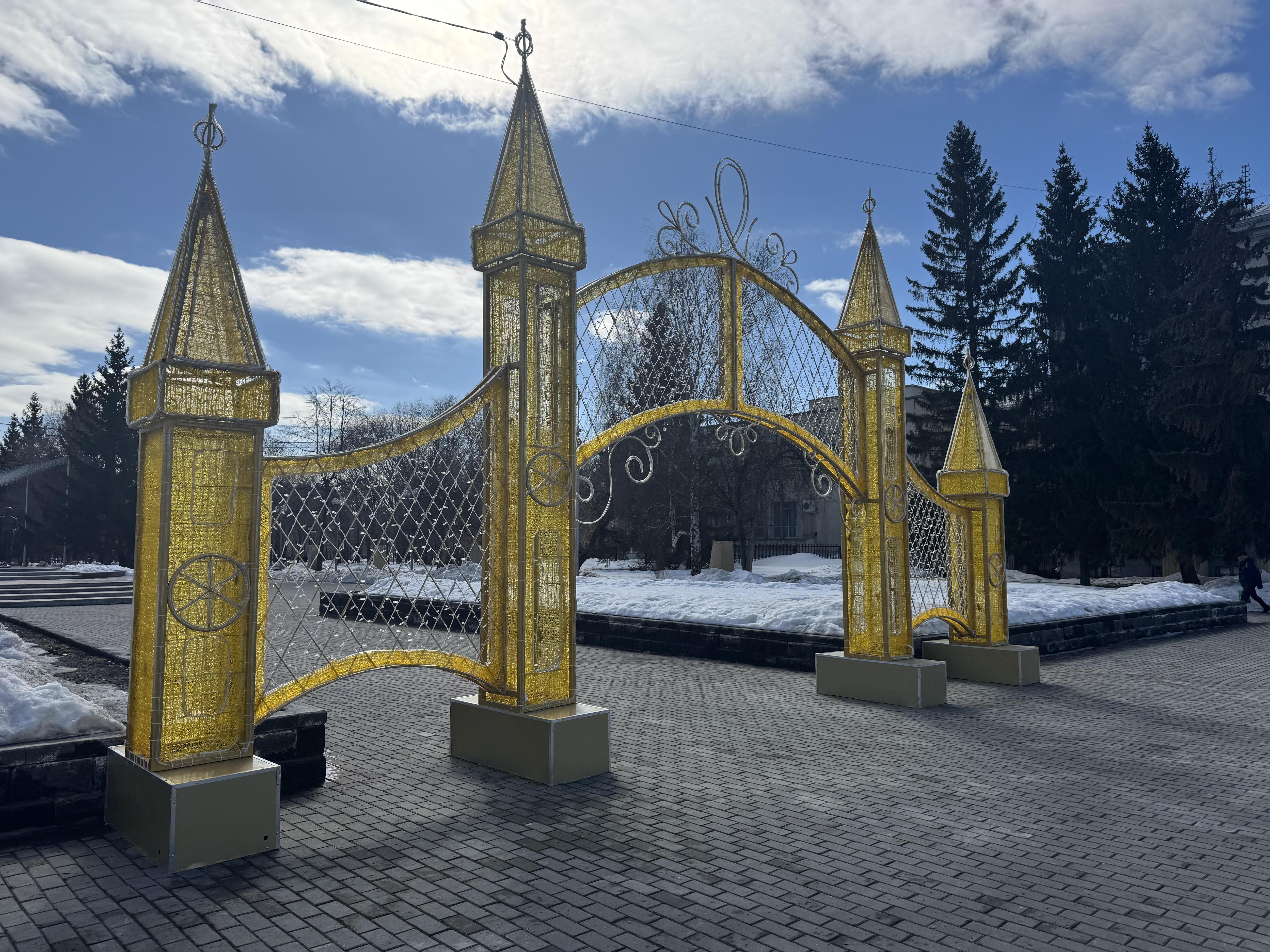 В горсаду установили светящиеся новогодние ворота.