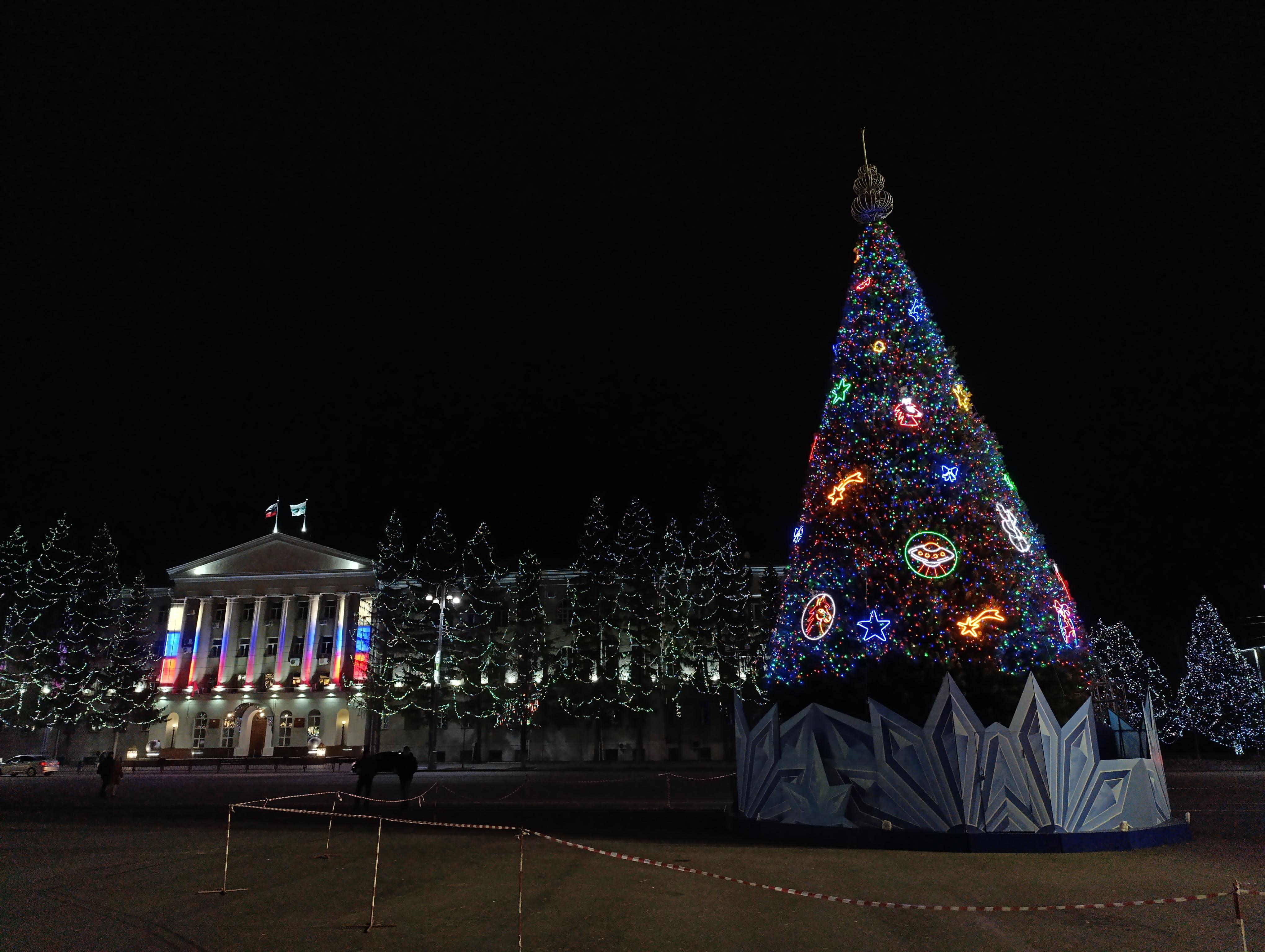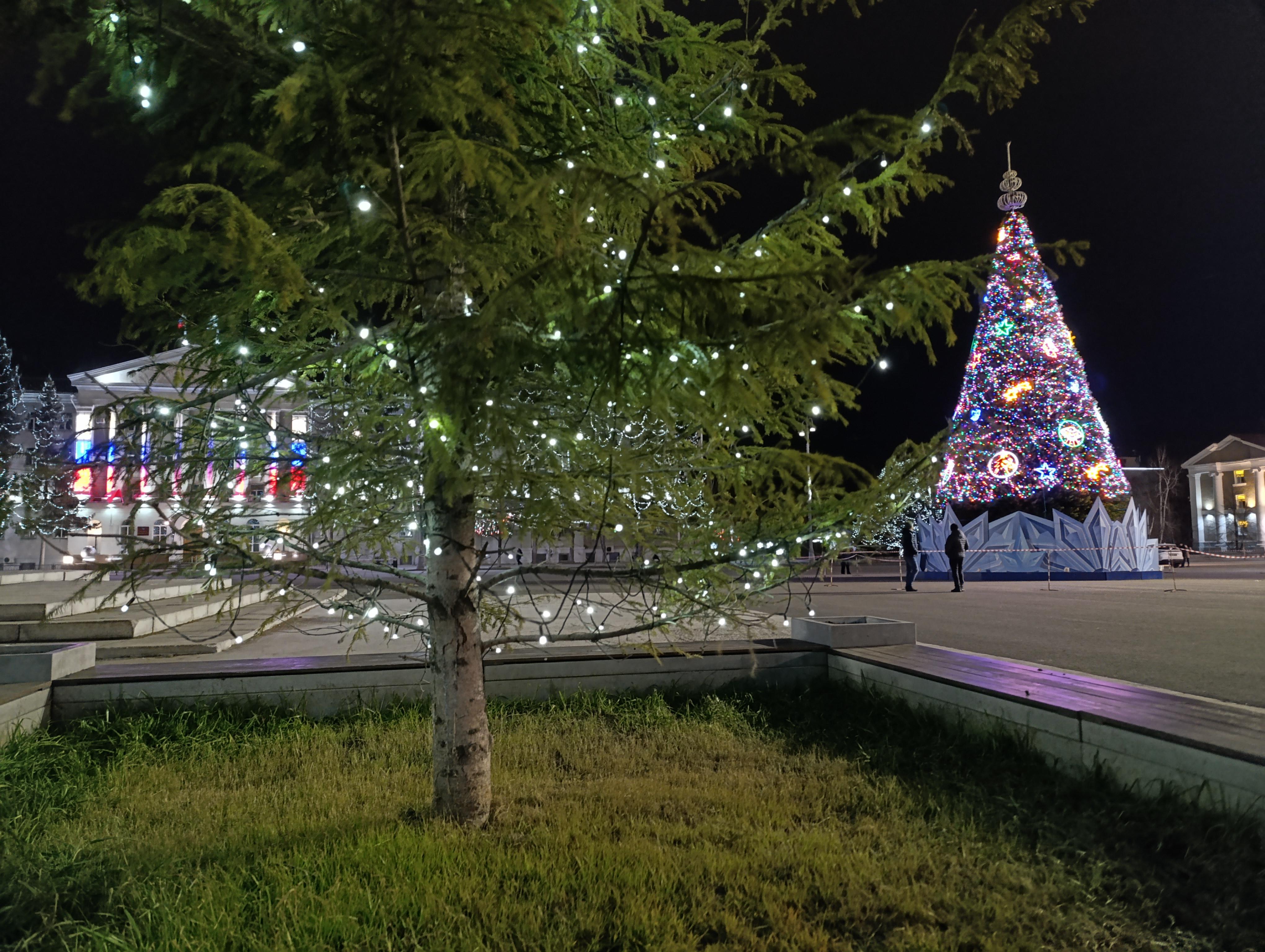 На площади Ленина в Кургане зажгли новогоднюю елку
