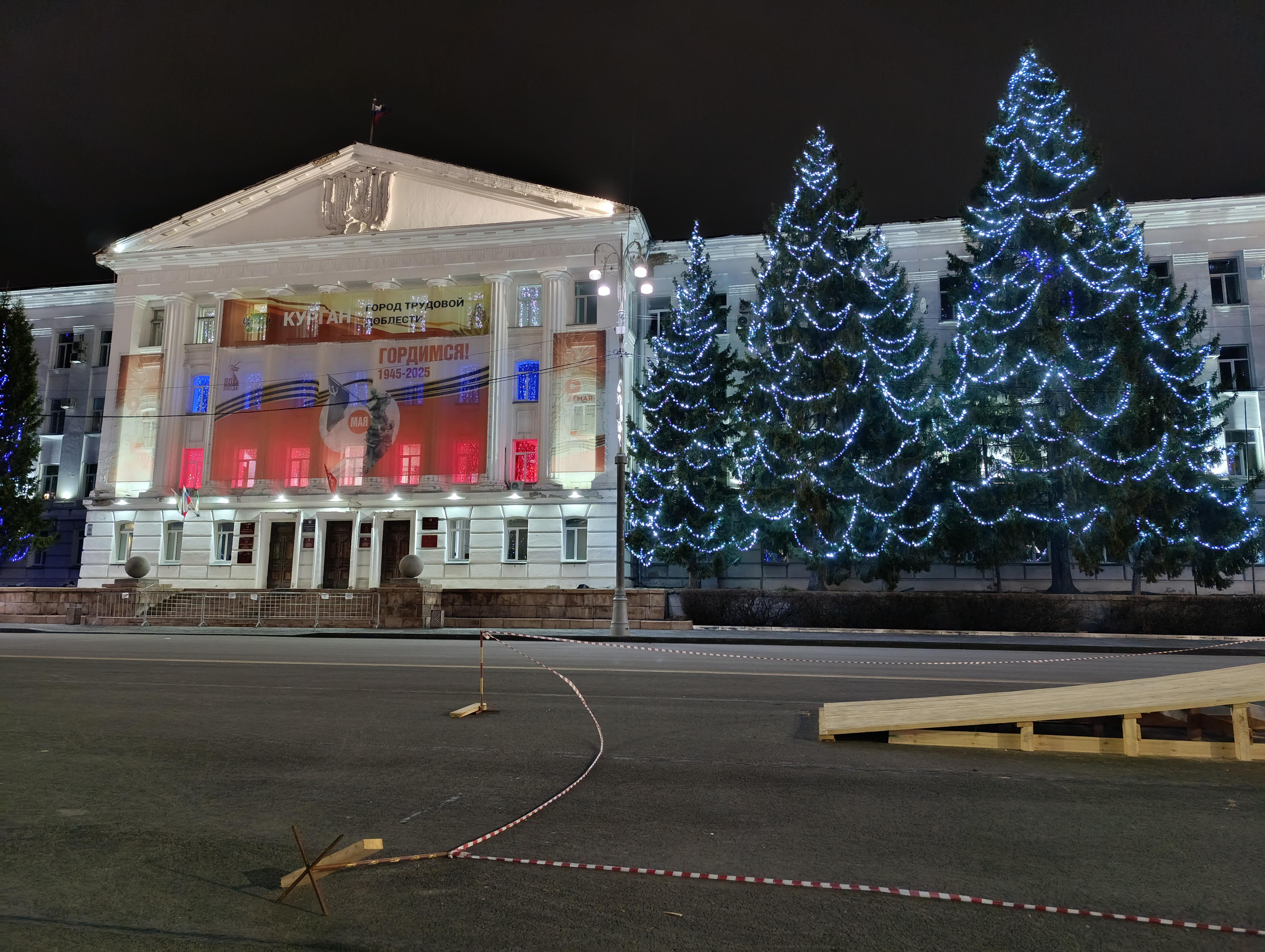 Сборку новогодней елки на площади начали 1 декабря. Тем временем, уже украшенная елка стоит в Центральном парке культуры и отдыха Кургана.