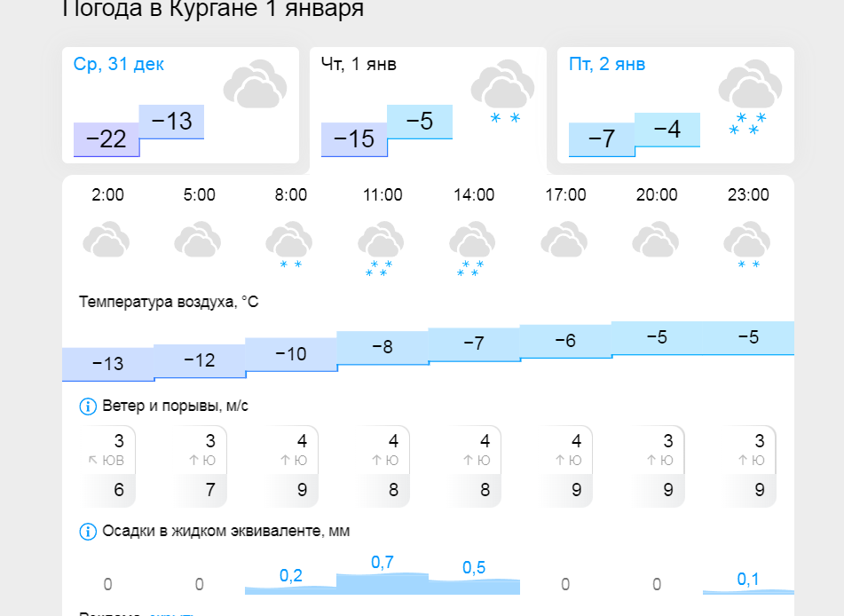 Прогноз погоды в Кургане на 31 декабря и 1 января