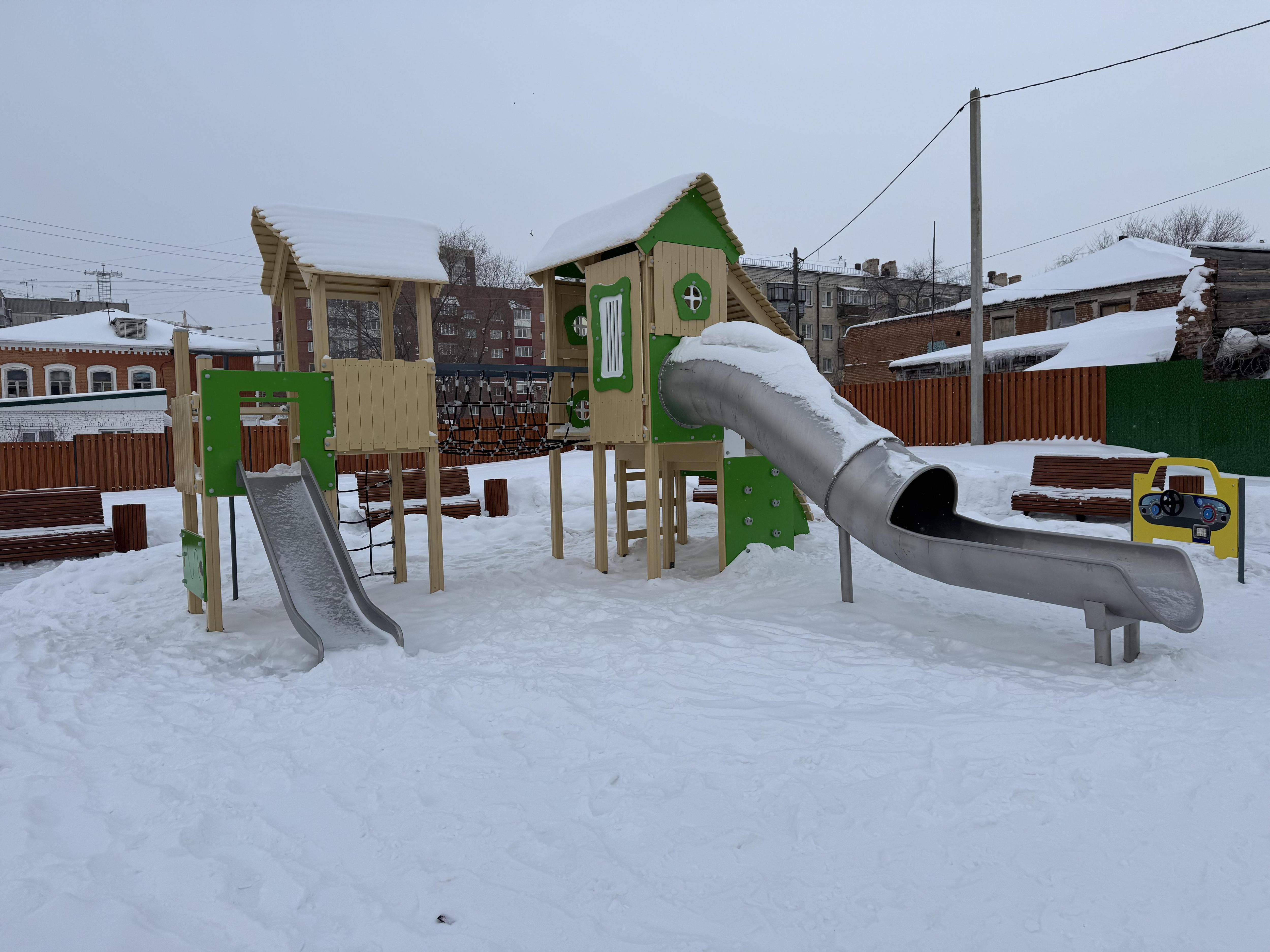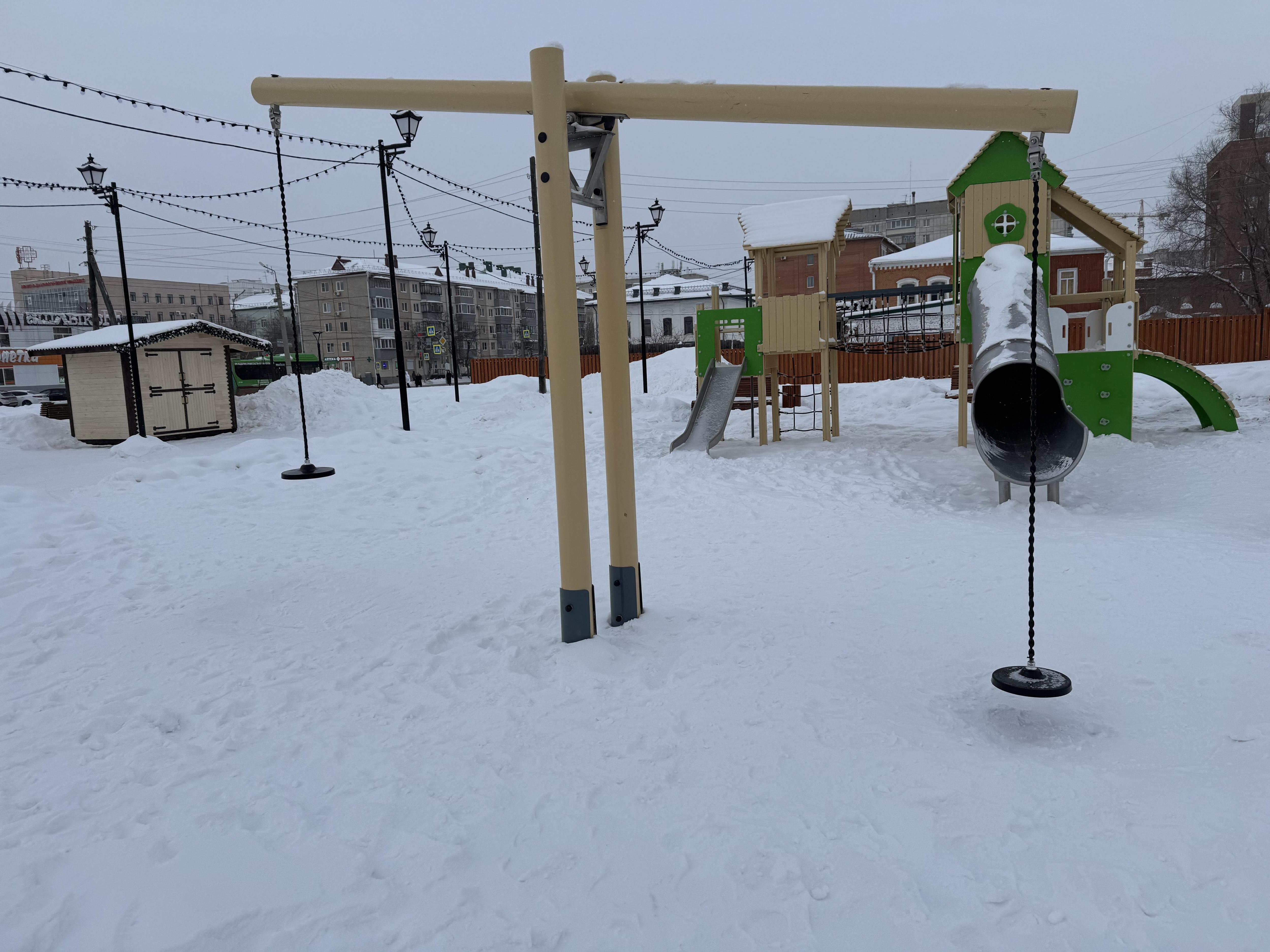 На перекрёстке улиц Пролетарская и Куйбышева появилась новая игровая зона, однако она пока покрыта снегом и не используется. В комплексе установлены качели-гнездо, несколько горок, беседка и скамейки.