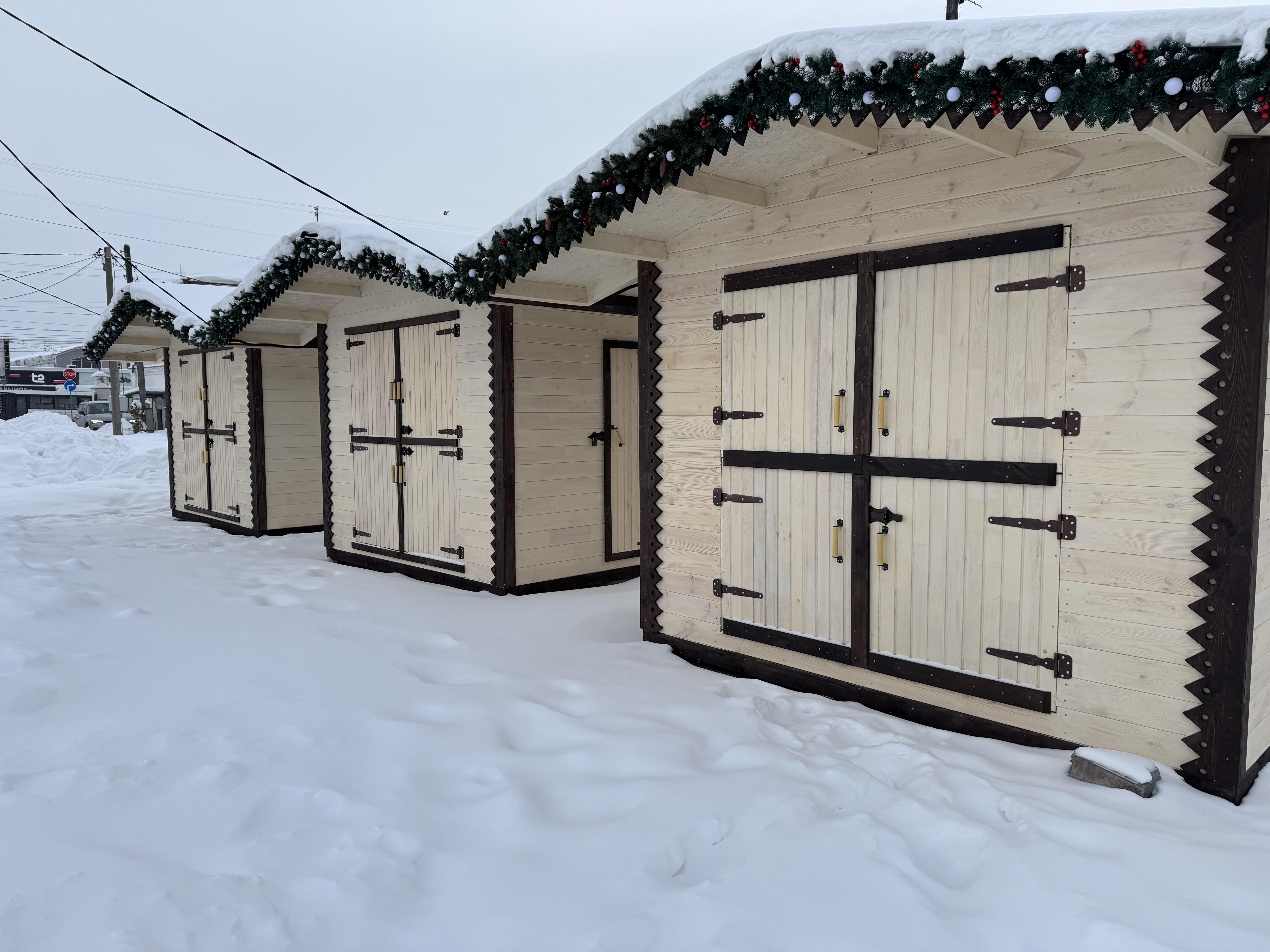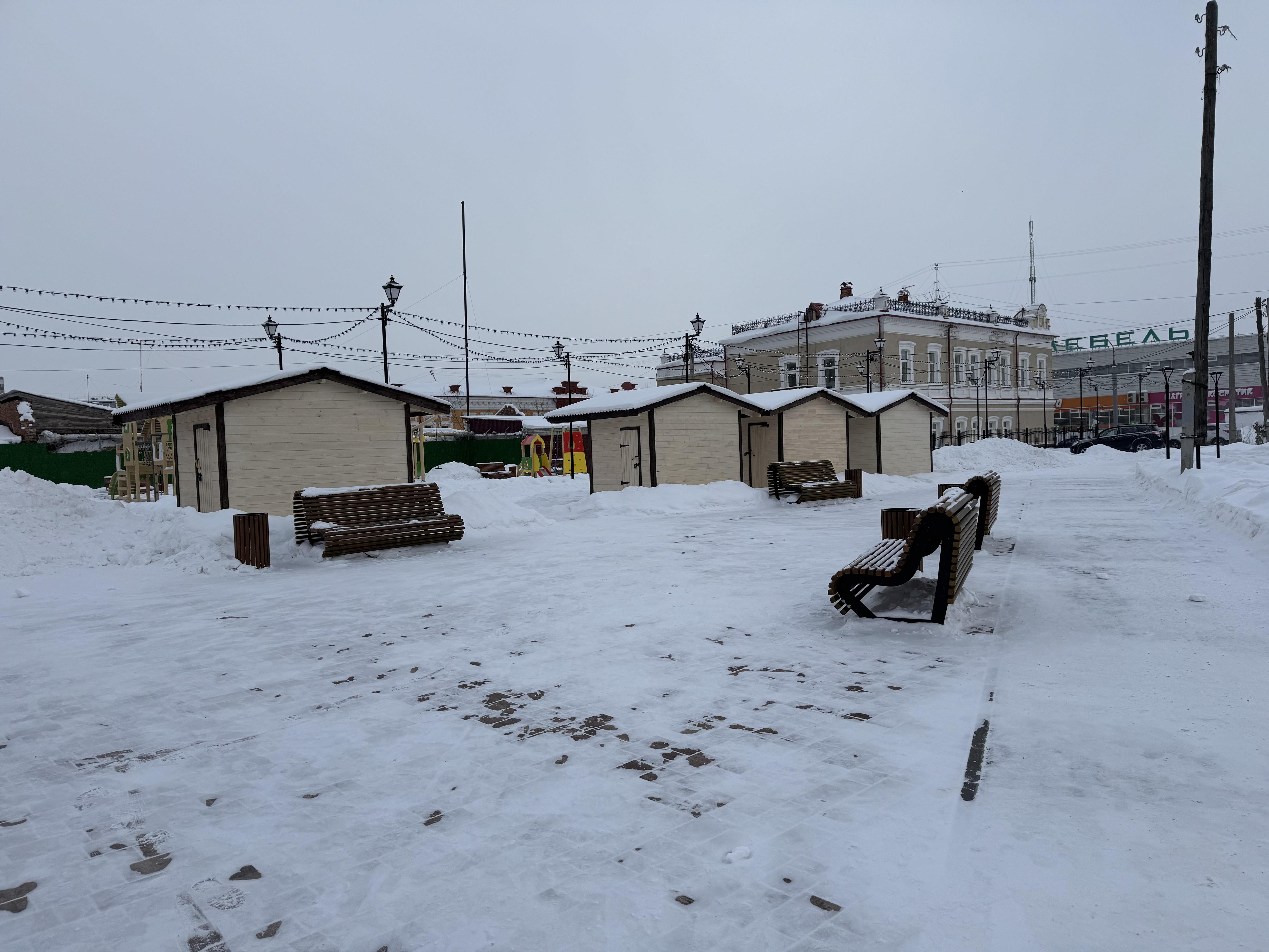 Площадь рядом с детской площадкой украшена гирляндами. Ближе к остановке «Центральный рынок» также разместили несколько торговых павильонов и дополнительные качели.