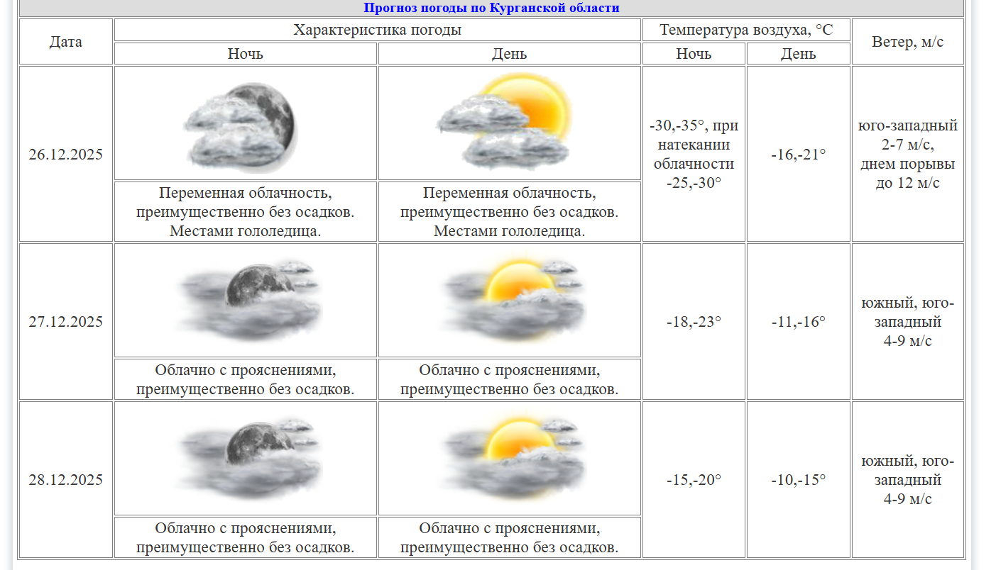 Накануне, 25 декабря, отмена также коснулась первых и вторых классов обеих учебных смен. По прогнозам синоптиков, период сильных морозов в Кургане будет непродолжительным: днём 27 декабря ожидается потепление до –11…–16°C.