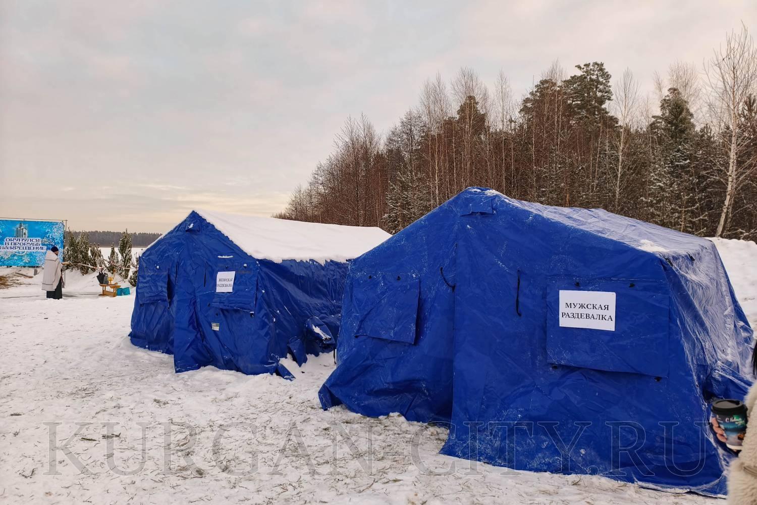 Крещенские купания стартовали в Кургане на Голубых озерах. Чин освящения воды совершил в 9:00 клирик Покровского храма протоиерей Павел Захаров. Для участников подготовили три купели и иордань, выполненную в форме креста, где можно набрать освященную воду.