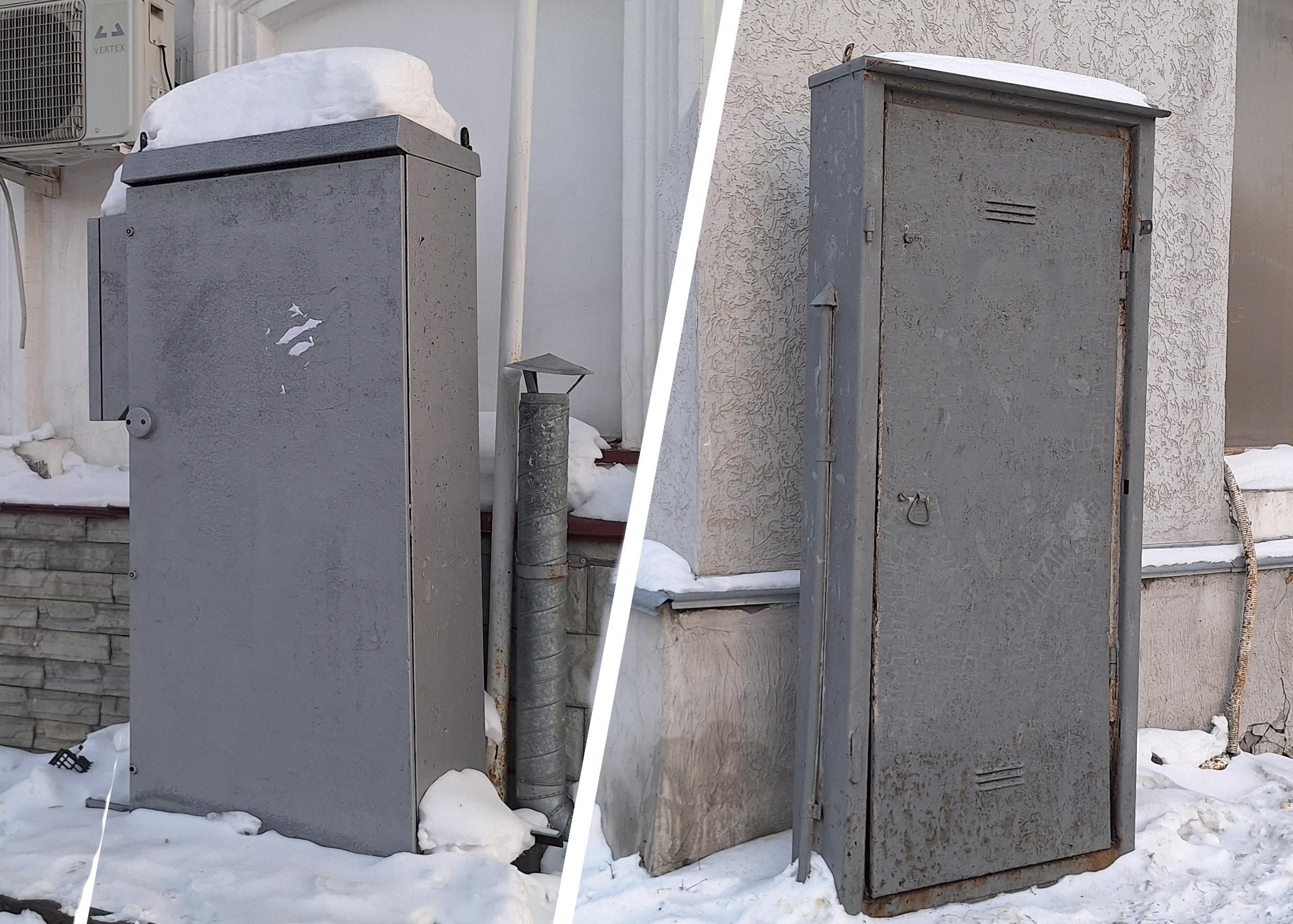 Коммутационные шкафы, на которых ранее были портреты Гальцева и Фадеева, теперь закрашены серой краской.