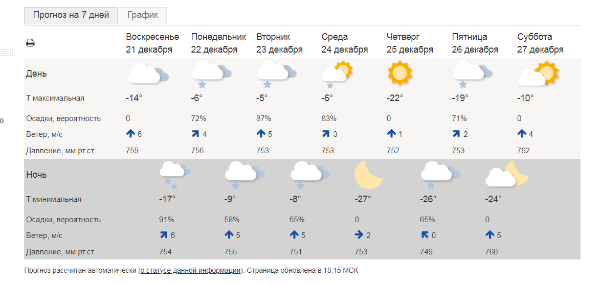 Погодная ситуация на 21 декабря