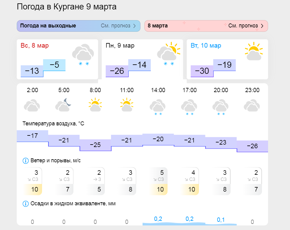 Жителей Кургана в период с 7 по 9 марта ждут переменчивые погодные условия. Относительно теплые дни быстро сменятся сильным похолоданием.