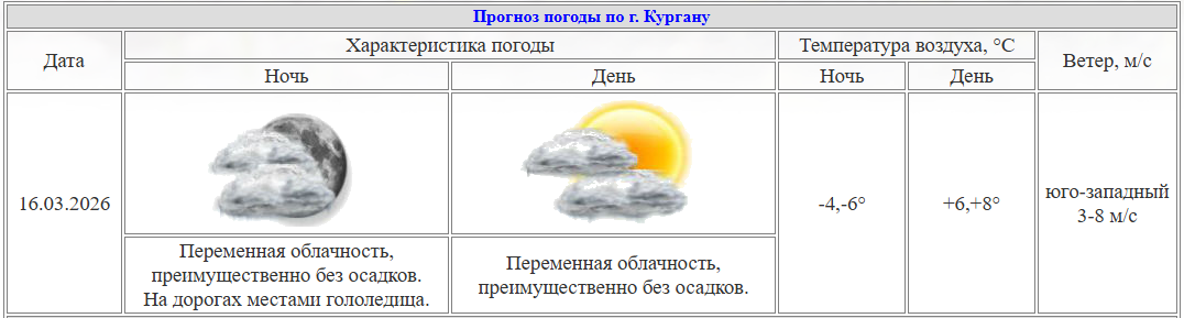 По данным курганского Центра по гидрометеорологии и мониторингу окружающей среды, днем в понедельник ожидается от +6 до +8 градусов. Ночью столбики термометров могут опуститься до -6. Осадков не прогнозируется, будет переменная облачность.