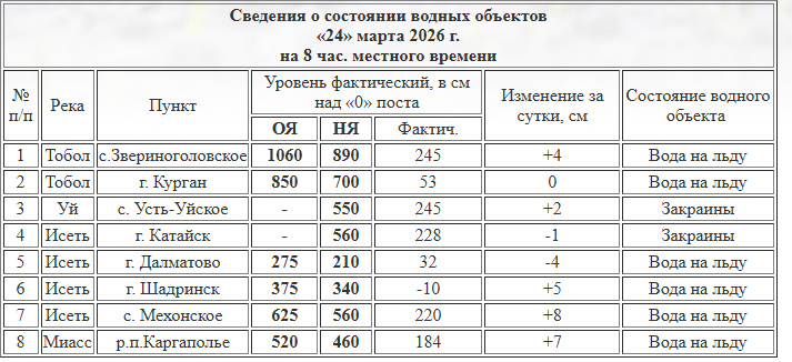 На интернет-ресурсе курганского ЦГМС ежедневно появляются актуальные сведения о фактическом уровне воды в реках Зауралья