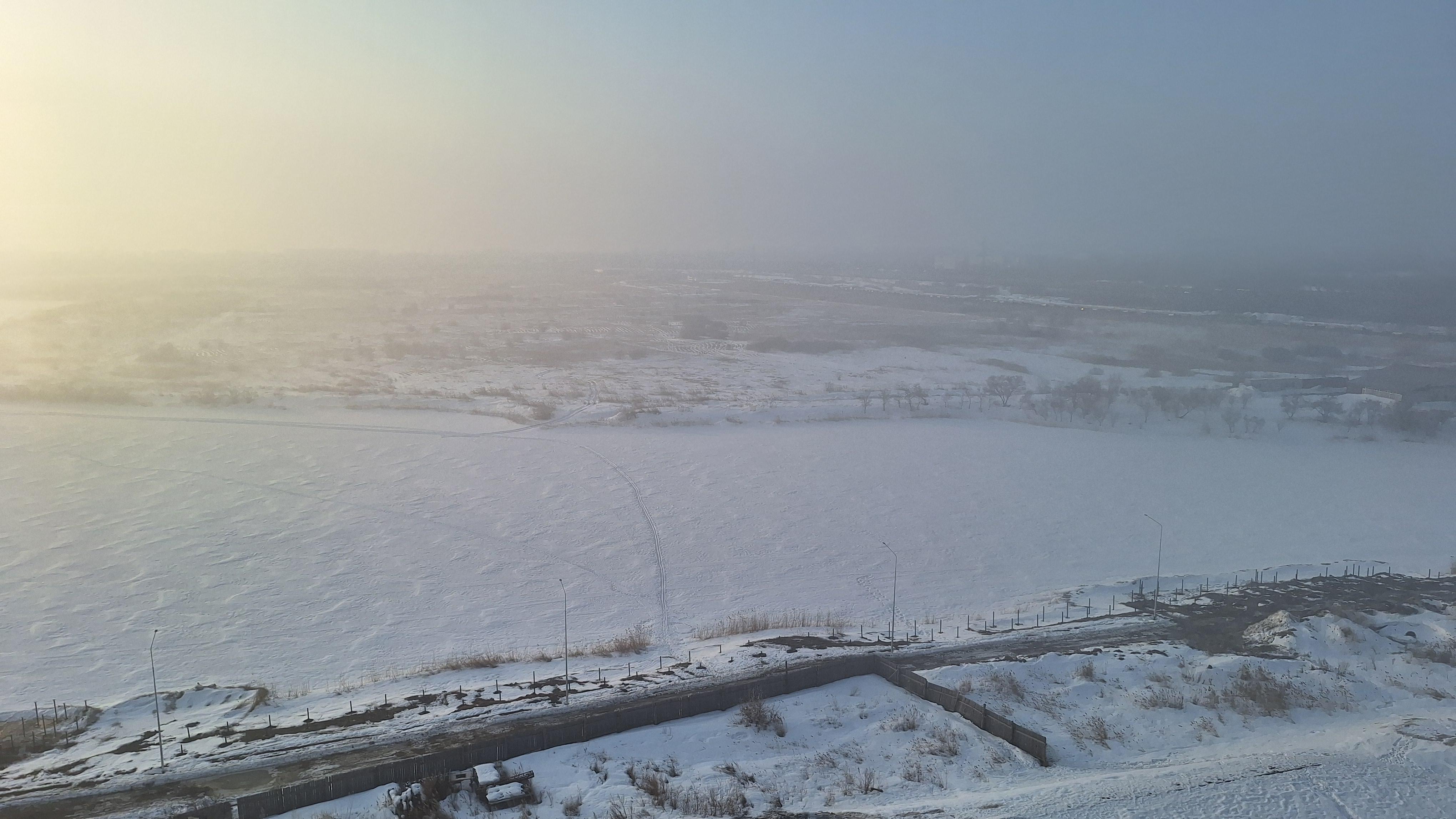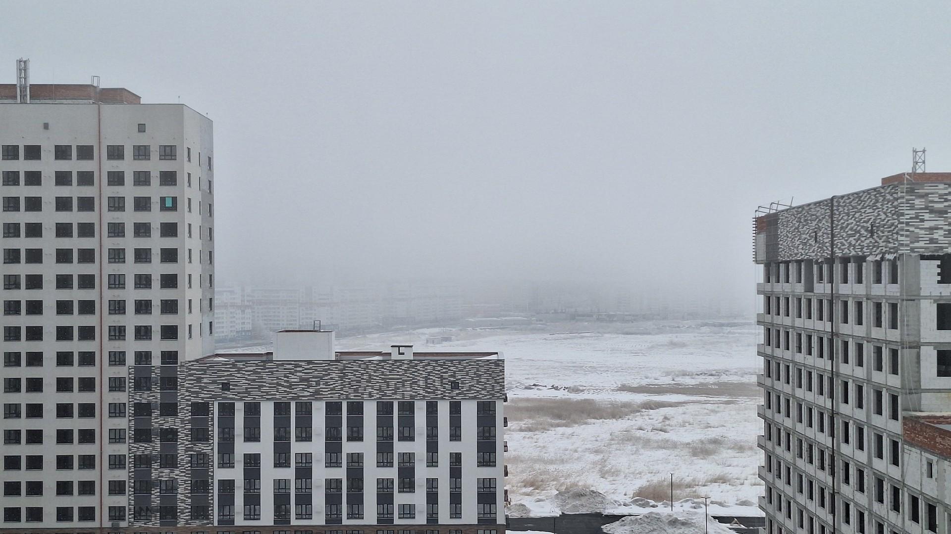 Район Заозерный в тумане