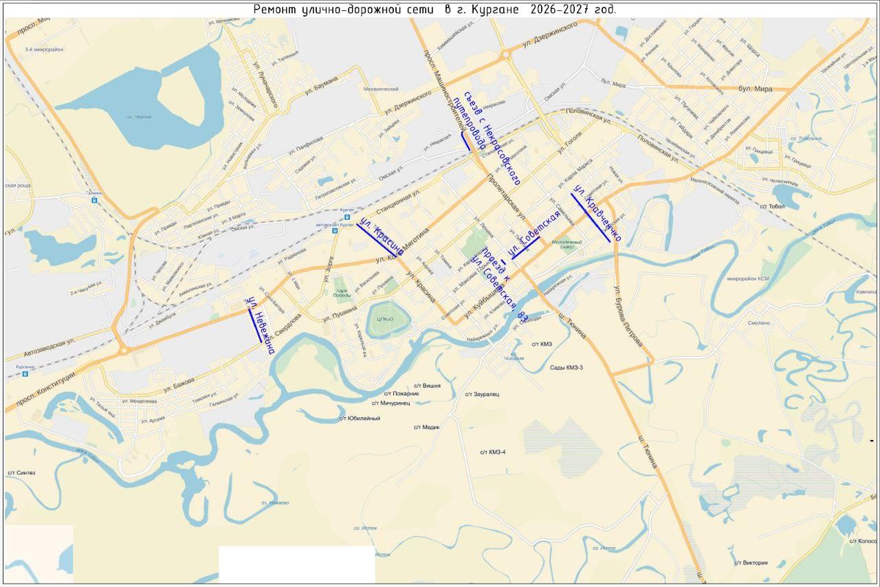 Список улиц Кургана для ремонта в 2026 году