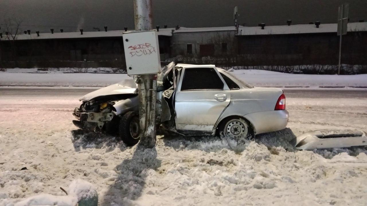 В Кургане в ночь на 5 февраля произошло дорожно-транспортное происшествие. На Галкинском переезде автомобиль Лада «Приора» врезался в электрический столб.