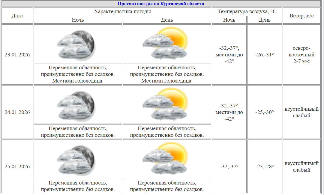 Прогноз подтверждают метеорологи Курганского центра по гидрометеорологии и мониторингу окружающей среды. На своем сайте они указывают, что холодная погода с температурой на 7 и более градусов ниже нормы сохранится в регионе до 26 января.