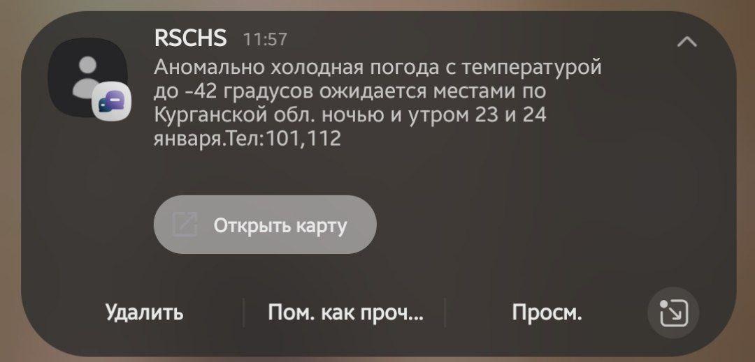 МЧС России распространило предупреждение для жителей Курганской области о сильных морозах до -42 градусов, которые ожидаются в ночные и утренние часы 23 и 24 января.