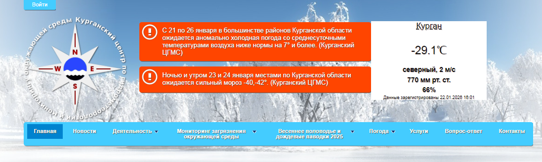 Официальное предупреждение о холодах размещено на сайте Курганского ЦГМС.