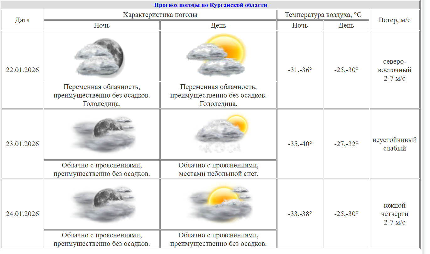 В ночь на 23 января в Курганской области ожидается похолодание до -40 градусов.