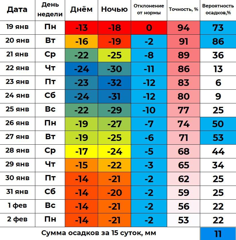 - 20 января: -16°C;