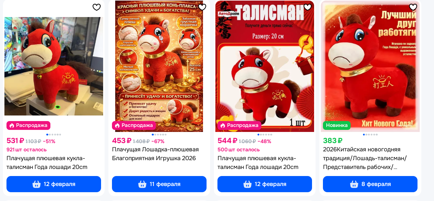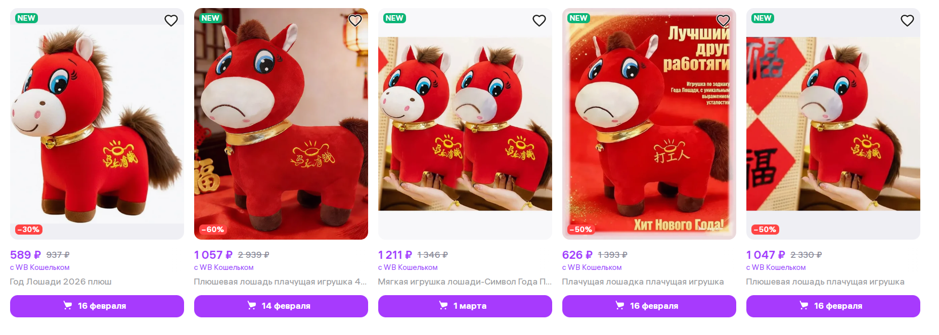 Плюшевая лошадка с грустной мордочкой, завоевавшая популярность в Китае, теперь продается на российских маркетплейсах. Игрушку создали в городе Иу к Новому году, но при производстве улыбку пришили перевернутой. Несмотря на эту ошибку, спрос на модель с печальным выражением лица резко вырос. Фабрика наладила выпуск до 15 тысяч таких изделий ежедневно.